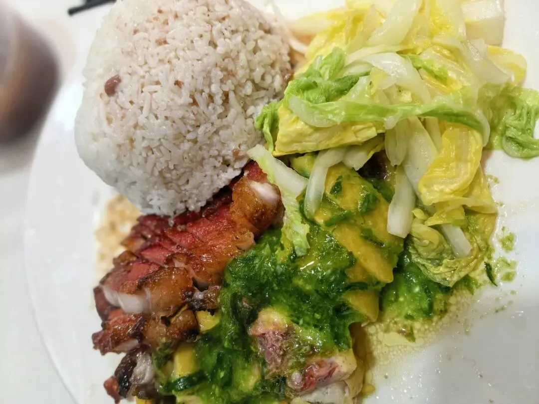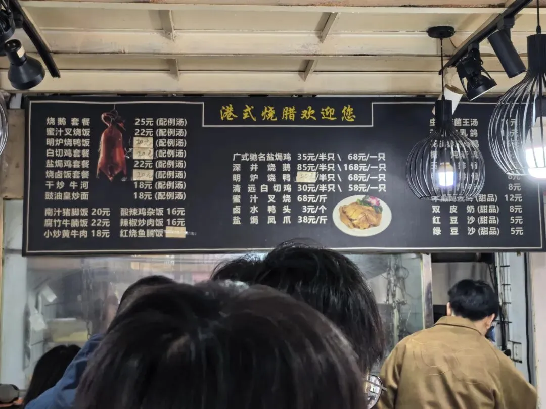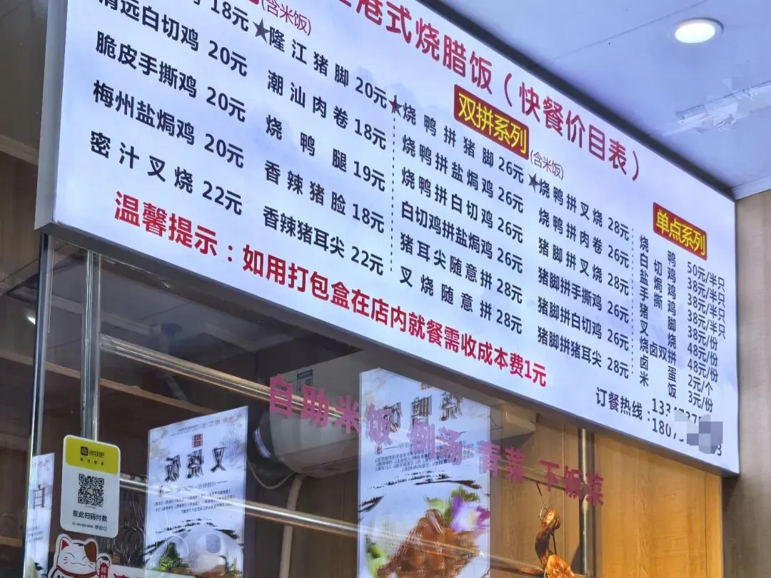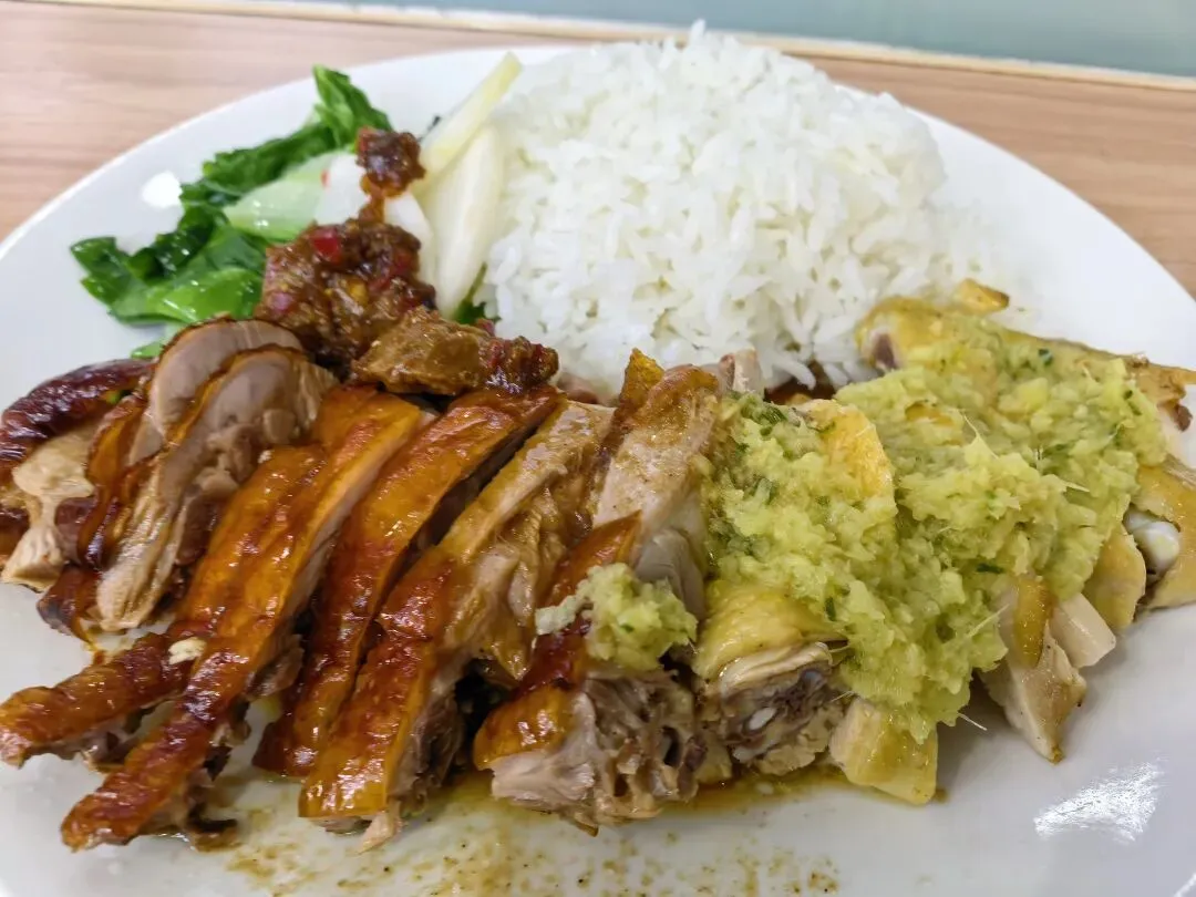 大家普遍是点双拼,常客应该可以从点单听出来,会用简称“叉鸭”“叉鸡”,另外不会问价格,分别代表叉烧烤鸭双拼和叉烧白切鸡,叉鸭感觉是畅销款,被点单最多。价格还算适中,叉鸭好像22/份,叉鸡20/份,收款提示音用的粤语,听不太出来。酱料有辣酱,还有梅子酱。