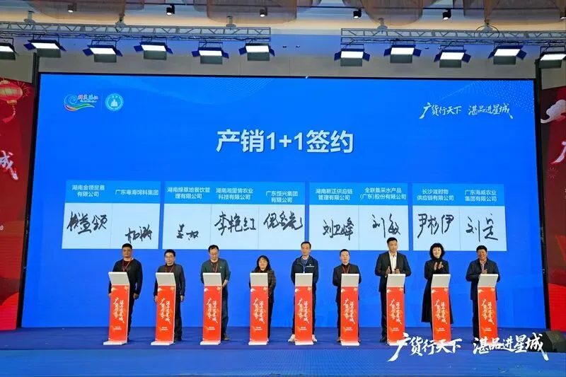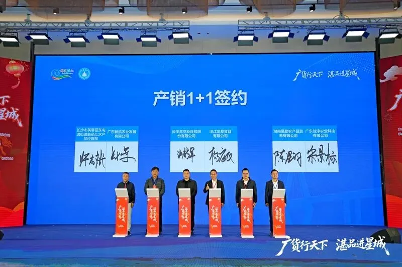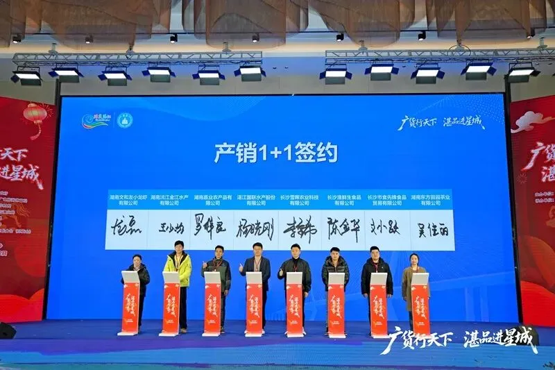 活动不仅是一场文化与美食的盛宴,更是一个高效的产业对接平台。在产销1+1仪式上,湛江国联水产、广东恒兴集团等企业与湖南金领贸易、湖南绿草地餐饮等12家企业达成合作,签约金额达11亿元。