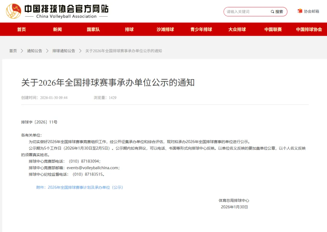 中国排球协会官网截图