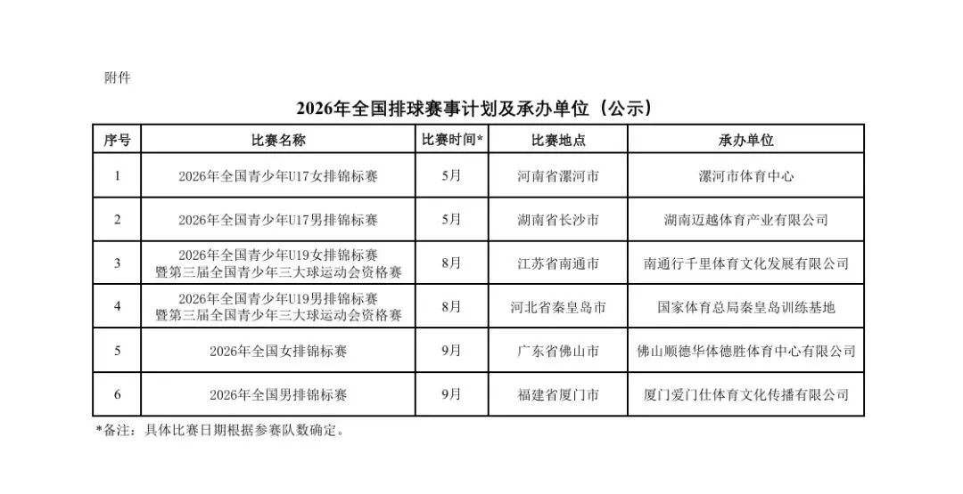 2026年全国青少年U17男排锦标赛落户长沙,赛事定于5月燃情启幕。
