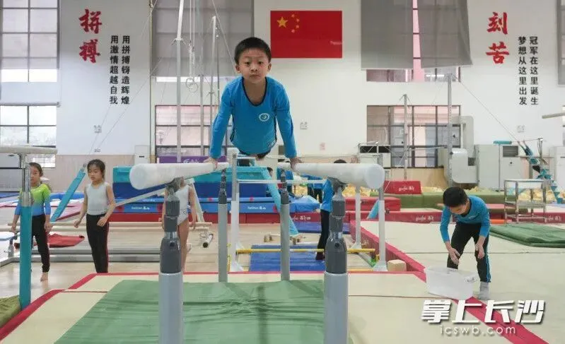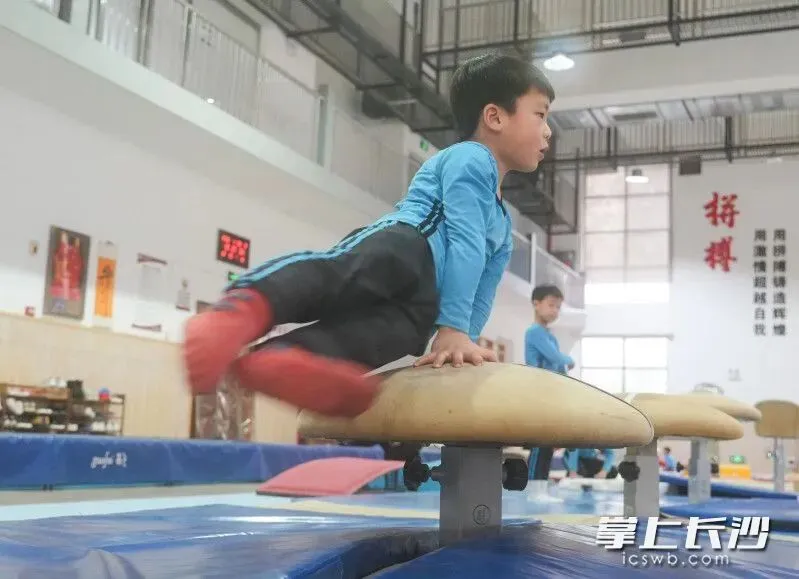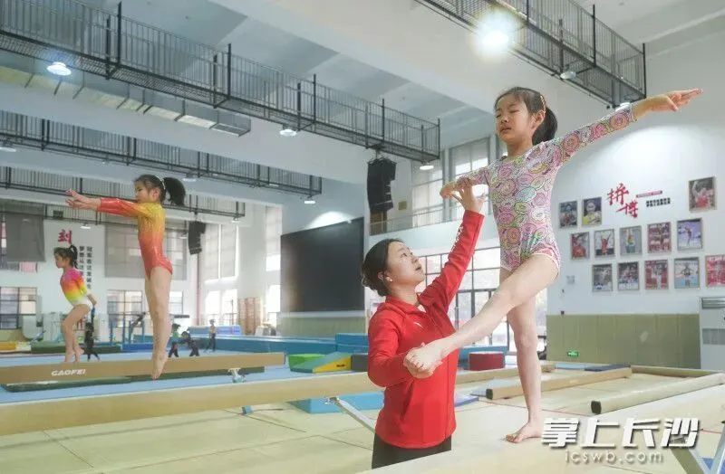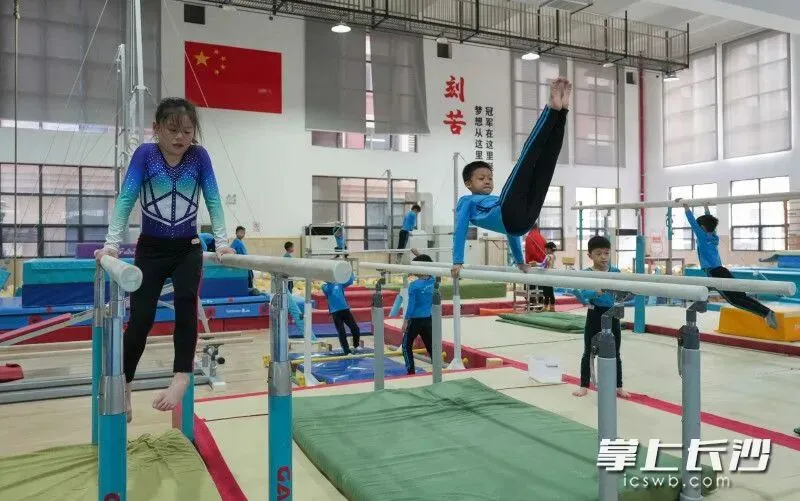 1月28日上午,位于望城区月亮岛街道的长沙市体操学校,一楼、二楼的训练馆内热火朝天。在很多学生已经放假、准备享受愉快春节的时刻,市体操学校的教练员和运动员们还在进行积极训练,备战省运会。对于运动员来说,冬训期间日复一日地艰苦训练,既可以调整身心、磨炼意志,也能够打好体能基础、储备综合能力,以迎接新一年的各项挑战。