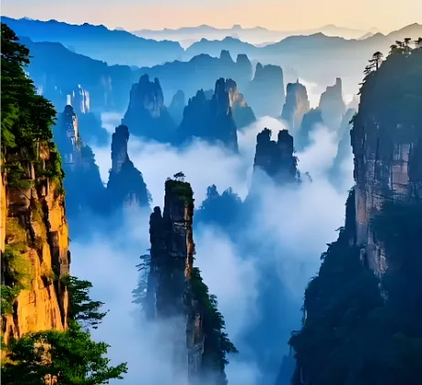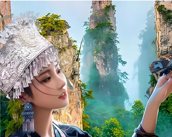 到张家界旅游,我和老伴提前预约了导游。清晨八点的武陵源东门广场,阳光初洒,一位身着土家族蓝色绣花服饰的女子已静立等候。