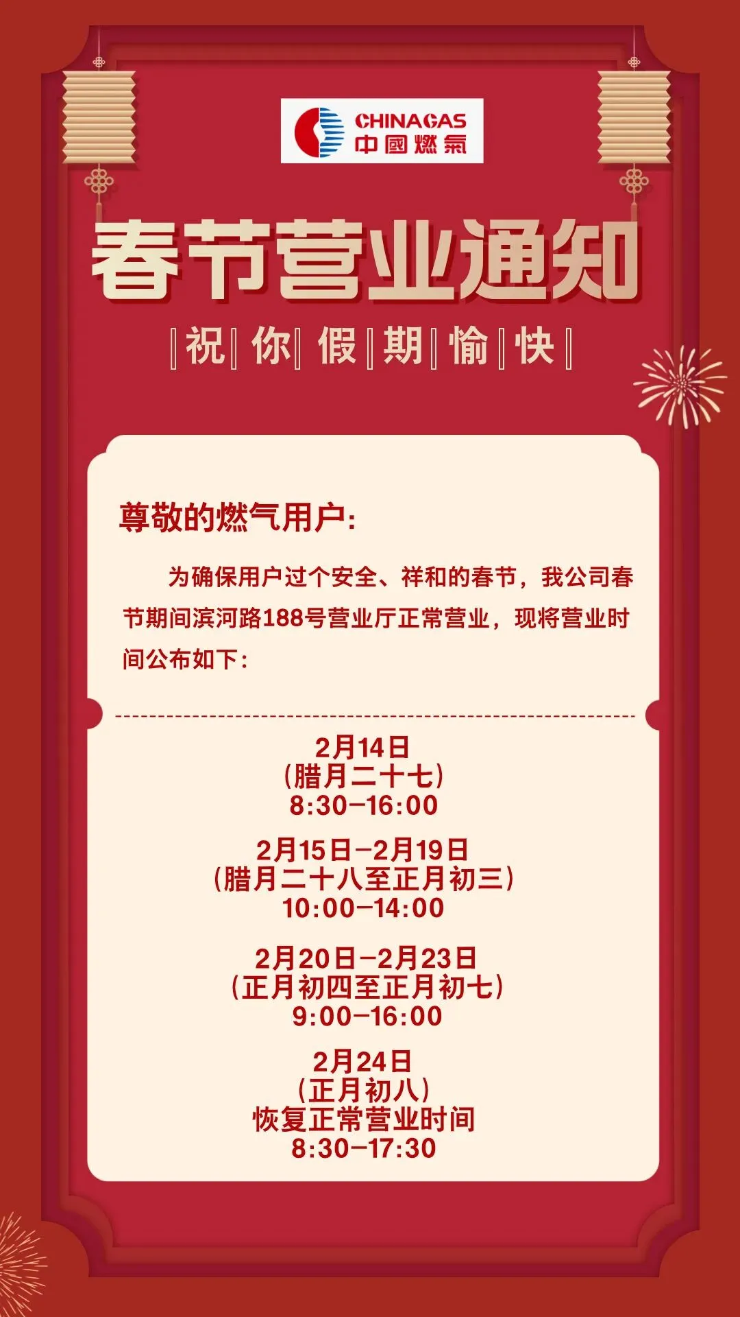 春节期间,除以上营业时间外,IC卡燃气表用户若需充值可前往鸬鹚湾汽车加气站进行充值,鸬鹚湾加气站不打烊,24小时竭诚为您服务。