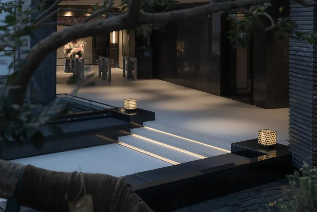 66米超长门庭,以庄重尺度矗立,成为社区在城市中的精神堡垒。孤植一株斜冬青树,低调而从容,象征着自然与秩序的平衡。