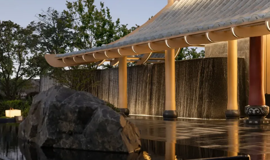 水是最古老的空间语言,也是最现代的抽象媒介。设计以连续水脉作为空间组织的内在逻辑。动线沿水展开,视线随水延伸,水面成为连接各个生活场景的“中介”。