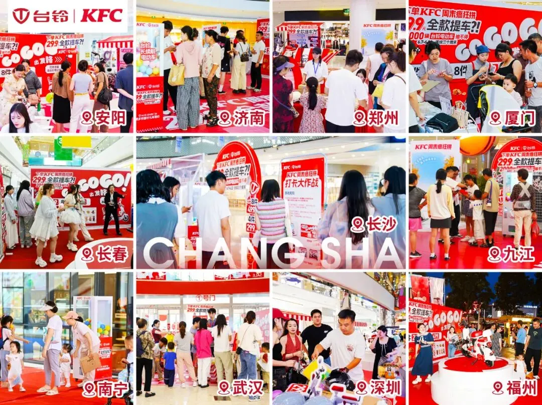 本次与肯德基联名,台铃在三个周末内免费送出了共计2000台联名电动车,掀起全国范围内的火爆参与热潮。打造cityride大事件,连续在海口、郑州、长沙开展线下骑行,让地域文化与骑行风尚激情碰撞,为线上线下用户带来耳目一新的视觉盛宴。深入全国数十个城市核心商圈,台铃与肯德基共同打造了欢乐联名路演,为都市人群解锁周末休闲新去处。联名广告更是点亮各大城市地标户外大屏,成为街头一道亮丽风景线。台铃与肯德基的跨界联名,将电动骑行的便捷与乐趣,融入肯德基所代表的潮流生活方式与高频消费场景,演绎都市年轻生活方式。通过线上线下多维度体验,台铃致力于为用户打造连接城市、探索生活的周末“疯狂”体验。用骑行定义潮流生活方式,焕新用户的出行体验,未来,台铃还将以更多创新形式,为更多用户带来丰富多样的骑行乐趣,让每一次出发,都成为探索精彩生活的起点,骑遇无限可能!