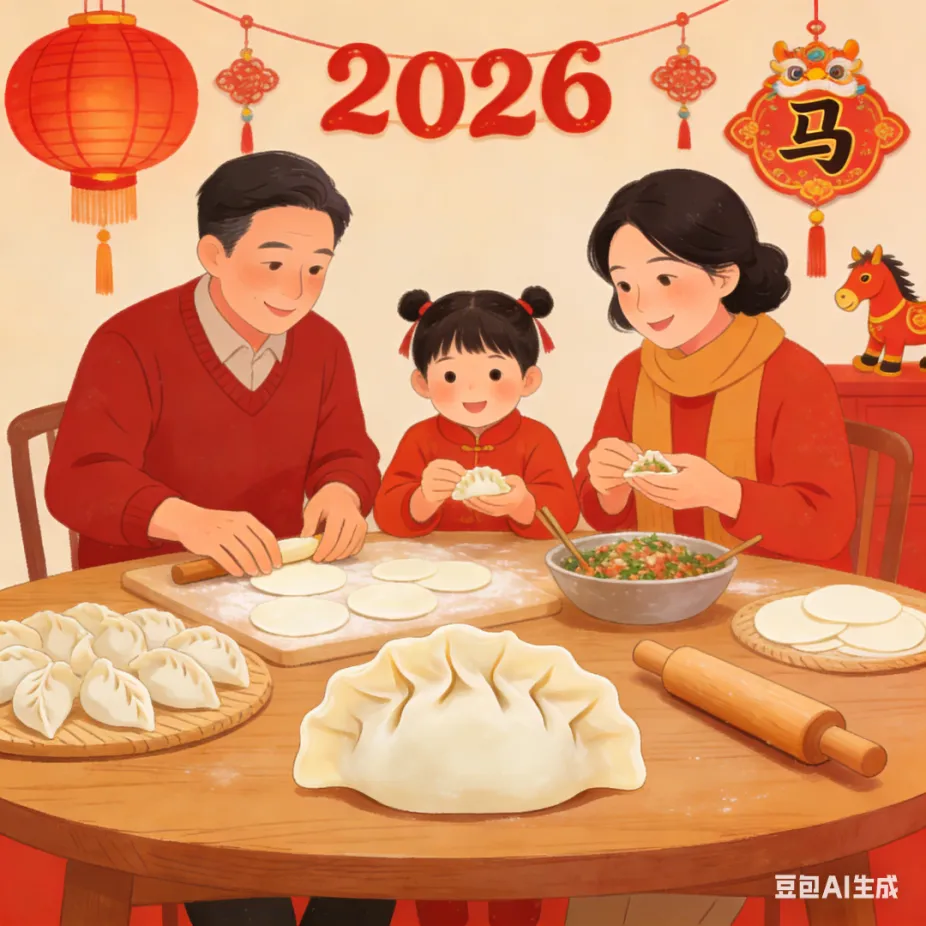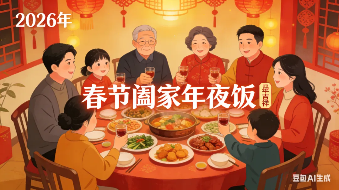 年夜饭:人间至味是团圆,一桌丰盛佳肴,承载着家人的牵挂,鱼(年年有余)、饺子(招财进宝)、年糕(步步高升),每道菜都藏着吉祥寓意。