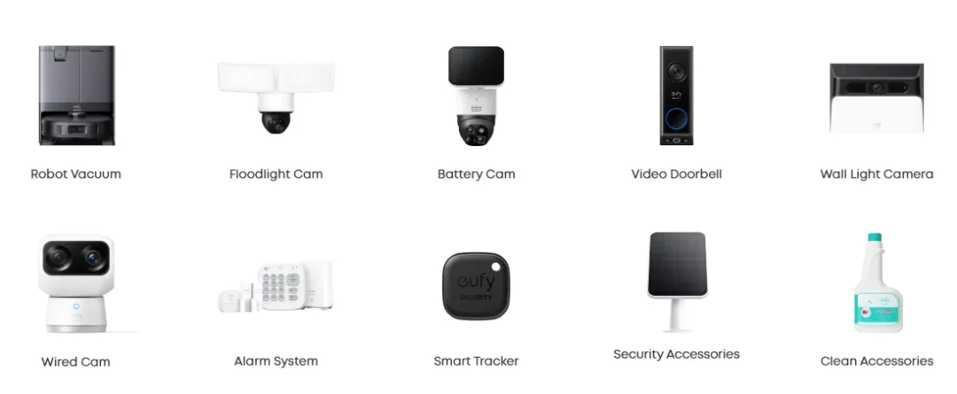 经过多年发展,Eufy品牌依托母公司安克创新的研发资源与技术赋能,已搭建起完善的产品矩阵,覆盖扫地机器人、吸尘器、壁装摄像头、有线摄像头、智能可视门铃等多款核心产品。