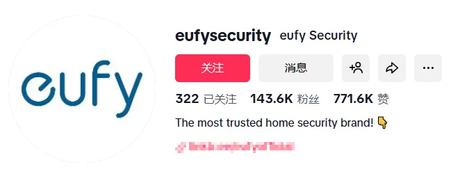 目前,关注数最多的账号是针对家庭安防安全特别建立的@eufysecurity,已收获了14.36万粉丝、获赞量为77.16万。