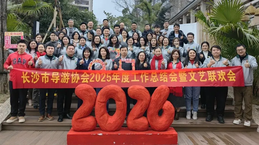 2026年1月31日,长沙市导游协会2025年度工作总结会暨文艺联欢会顺利召开!长沙市文化旅游广电局副局长、党组成员余岚、岳锋、长沙市导游人员管理服务中心主任廖帅、副主任肖雪、长沙市导游协会会长、副会长、理事、监事、单位理事、秘书处、会员代表及合伙单位代表等参加了会议。