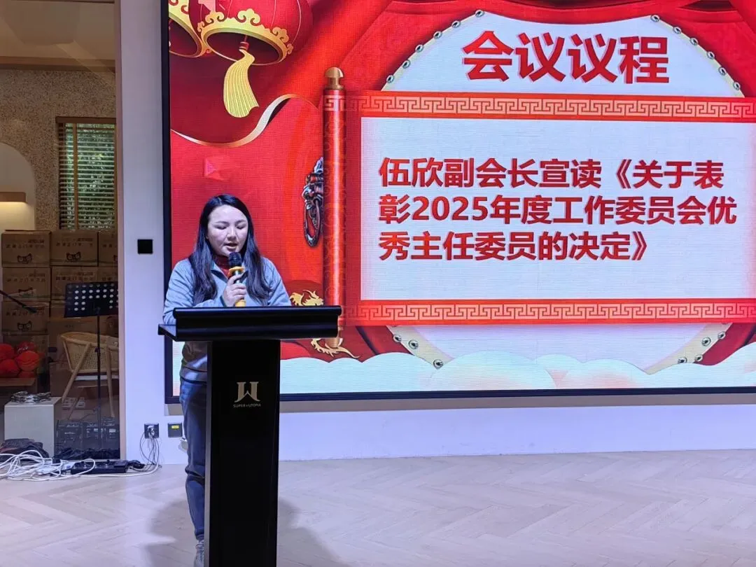 伍欣副会长宣读《关于表彰2025年度工作委员会优秀主任委员的决定》。