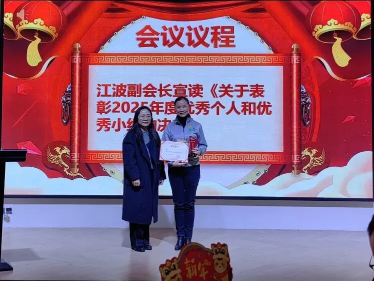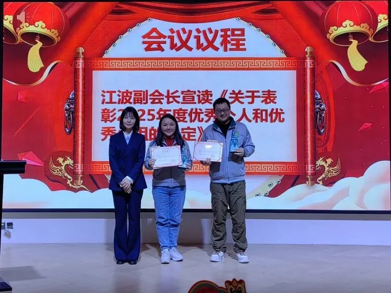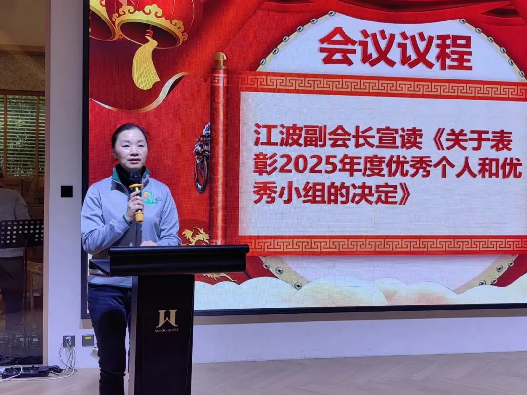 江波副会长宣读《关于表彰2025年度优秀个人和优秀小组的决定》。