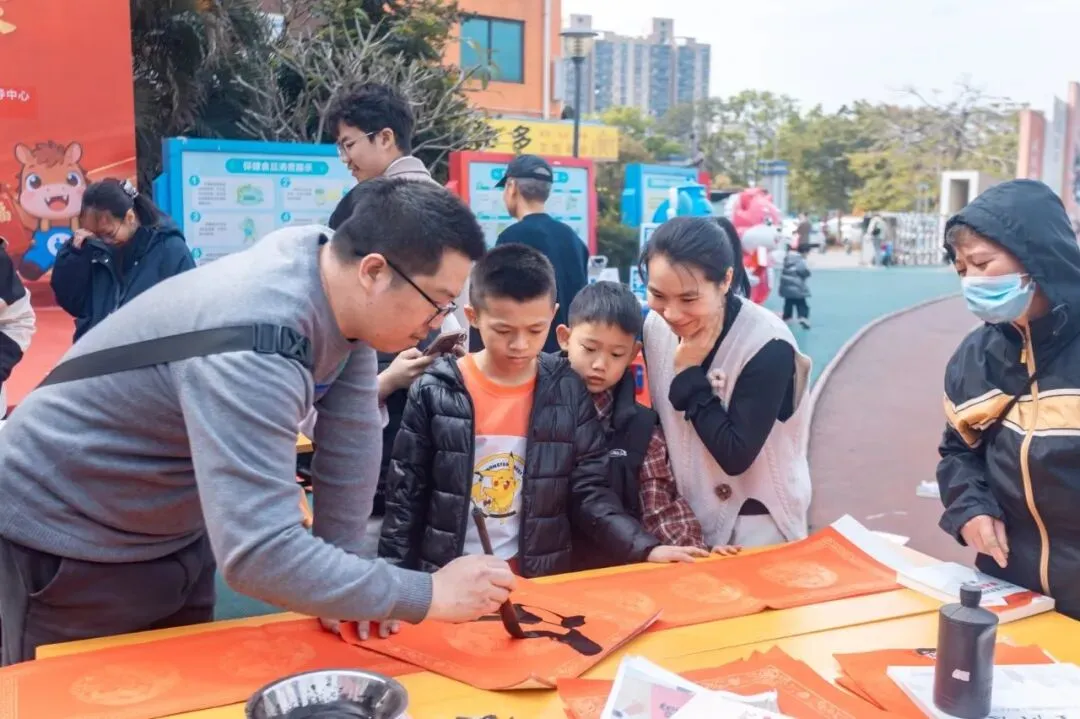 本次活动以“赠春联+音乐会”的立体形式,为传统年味注入生动活力。在赠春联活动区,红纸铺展,墨香四溢。李强稳、黄松林、张巨发等十余位书法名家与新秀现场挥毫,将美好的新春祝福凝于笔端。市民们或驻足欣赏,或排队请“福”,手捧一幅幅寓意吉祥、墨迹醇厚的手写春联与“福”字,喜悦之情溢于言表。
