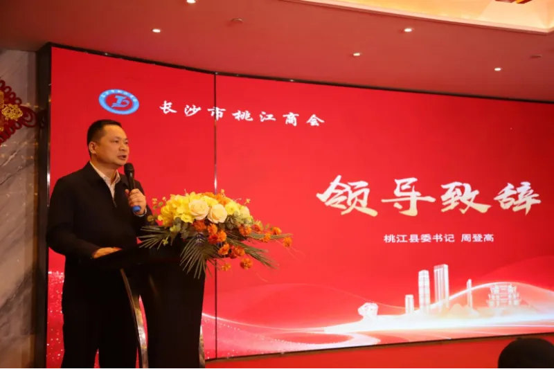 2月1日下午,长沙市桃江商会2026年年会暨“桃品出桃”推介会在长沙举行。县委书记周登高出席并致辞,县委副书记、县长沈澍及县领导王思婷、伍令贤、杨凯波、于新胜、陈丹、璩海雄、董佳等出席。县商务局、科工局、工商联、城投集团等单位负责人,和在长乡贤、企业家代表及各界嘉宾齐聚一堂,共叙乡情友谊,共谋发展新篇。