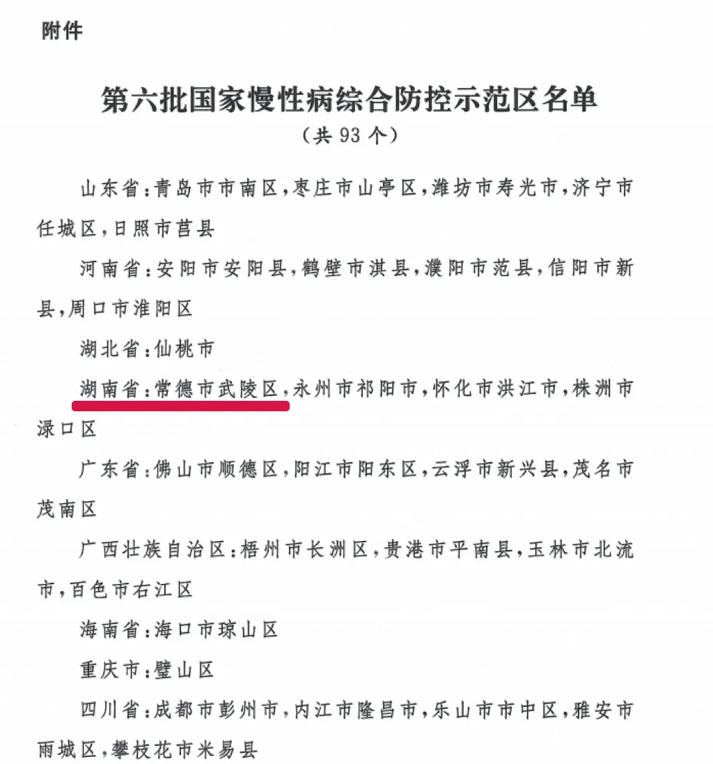 喜报!常德市武陵区获评第六批国家慢性病综合防控示范区