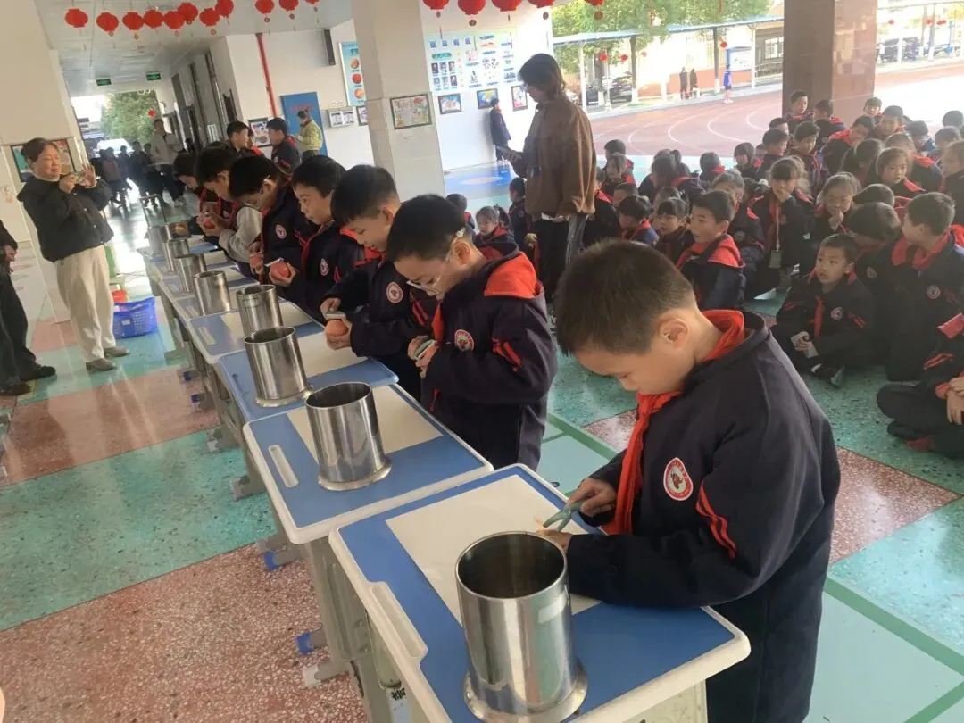 学生们在手剥橙子、系鞋带、鞋带系蝴蝶结、刀削水果皮、包纸书皮、剪纸、穿针线缝2粒扣子等实操项目中大展身手,充分展现了扎实的劳动技能与积极的参与热情。