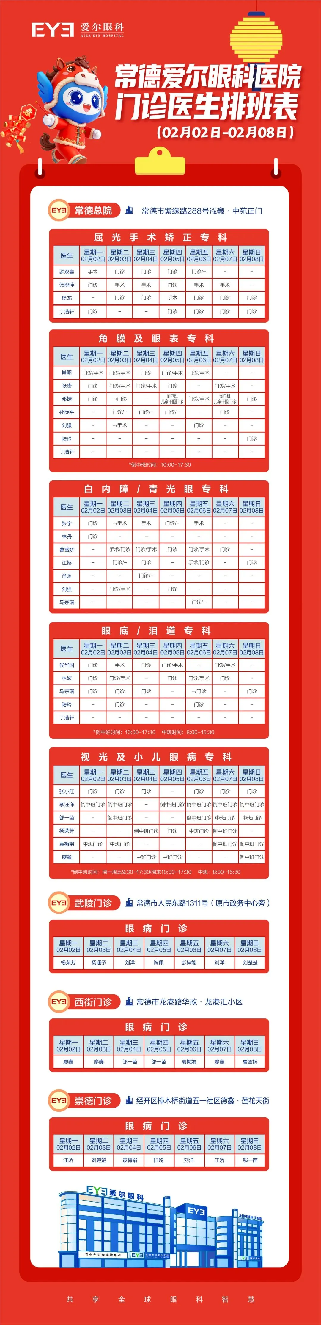 >爱尔眼科常德地区【2月2日—2月8日】门诊安排
