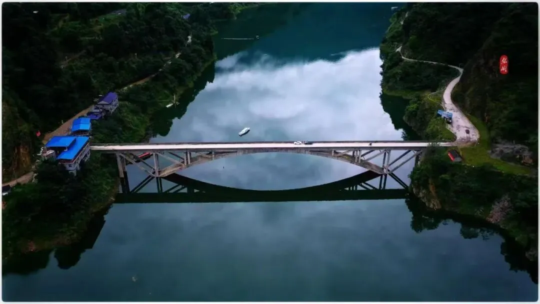 客自柳杨溪登舟,溯溇水而上。水势渐平,浩瀚如镜,乃知已入江垭水库平湖区。此湖为治溇水而筑,竟成“高峡出平湖”之壮景。