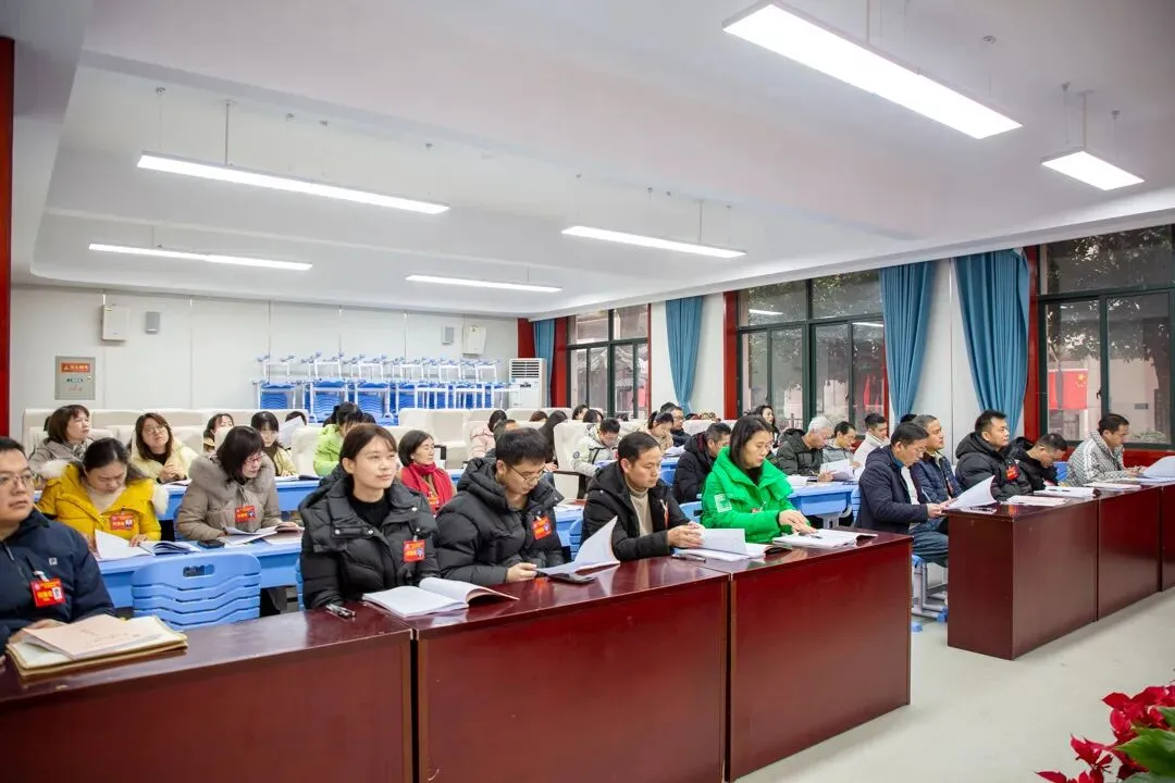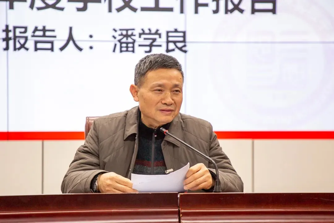 学校党总支书记潘学良同志首先作《长沙市田家炳实验中学2025年工作报告》,报告以 “方向旗帜更加鲜明、协同合作更加深化、辐射影响更加广泛、五育融合更加落地、教学深耕更加笃实、师能涵养更加蓬勃、服务保障更加有力、平安筑基更加稳固” 八个关键词为脉络,系统回顾了学校一年来取得的扎实成效。这些成果的取得离不开每一位教职工的辛勤付出与默默奉献。展望未来,学校将围绕“提质增效”与“内涵建设”,进一步强化党建引领、深化教学改革、优化育人体系、提升治理效能,共同绘就长沙市田家炳实验中学更加美好的教育图景!