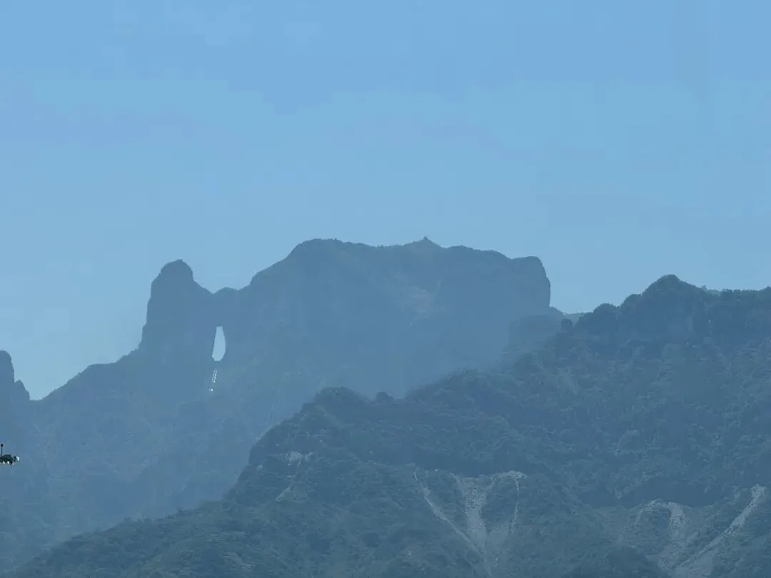 天门洞远看觉得不大,站在它面前就觉得人很渺小了。毫不犹豫的选择了坐电梯,那个999级看着都够呛。在石壁上看见化石的痕迹,沧海桑田具像化了。