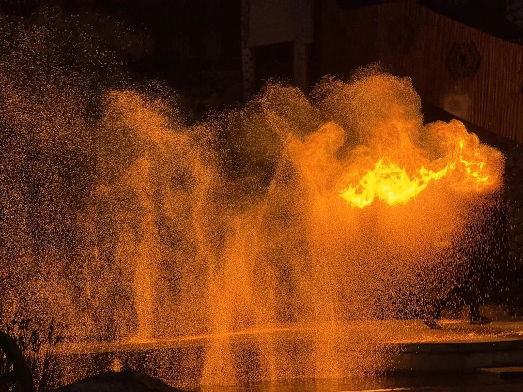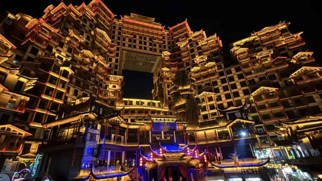 网红打铁花以前没见过,璀璨闪耀,在灯光秀的映照下,程序化的美丽飞天仙女,面无表情地完成了她的钢索飞天打工。莫名有一种荒诞感,灯光闪耀,歌声缭绕,但是我仿佛在这些之外。各种常规网红小吃让人没有想吃的欲望。