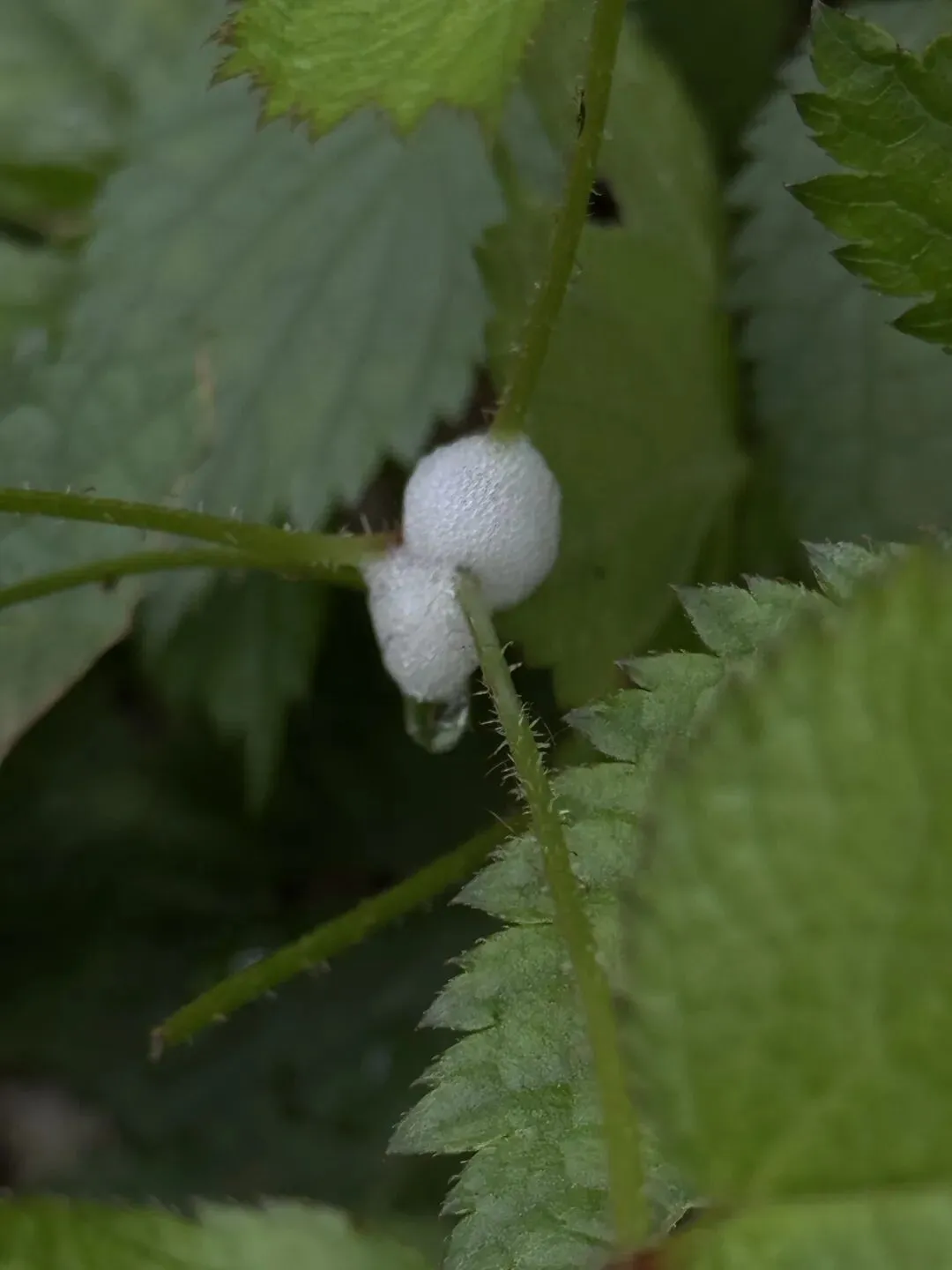 有一种树叶会吐水,后来查了是虫子吐的。