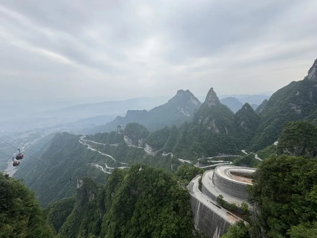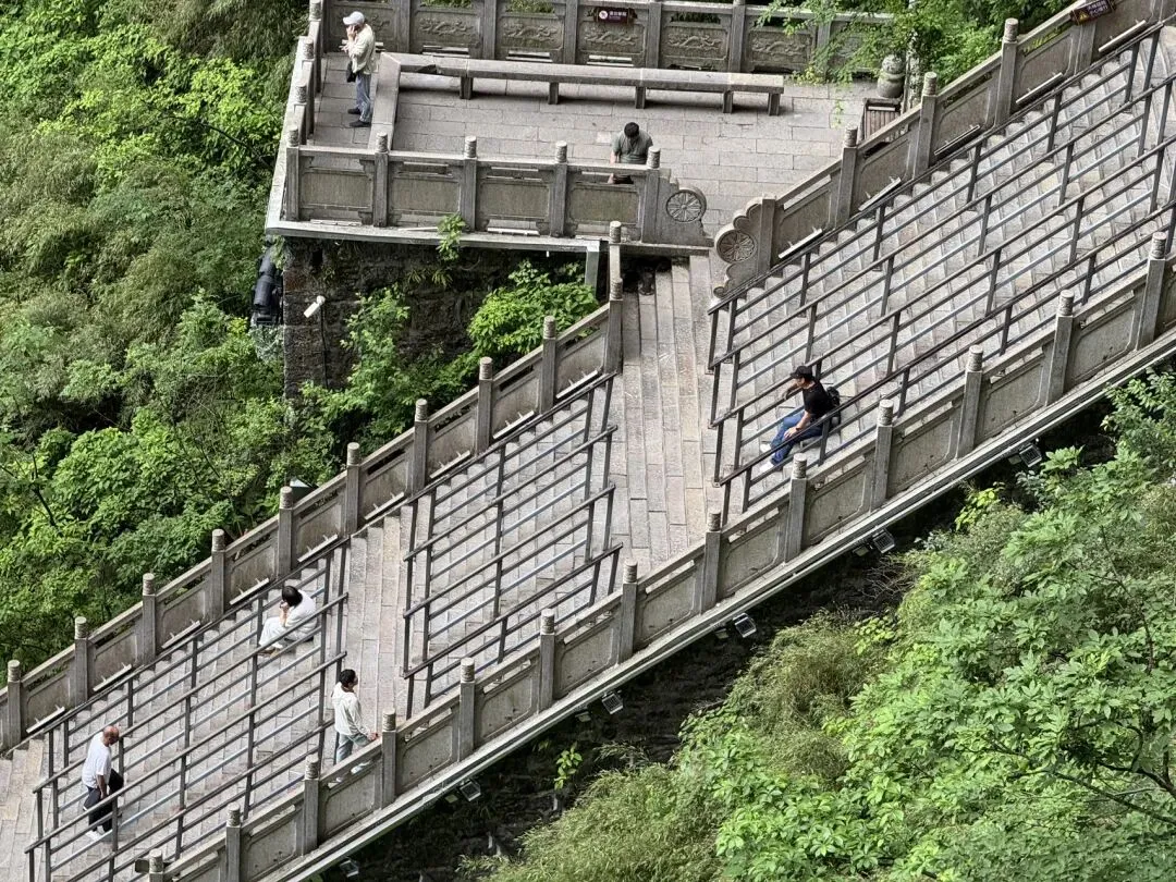 B线坐车上山,快速索道直达天门洞,然后坐穿山电梯或者爬999级台阶上到山顶,之后坐最长索道下山;