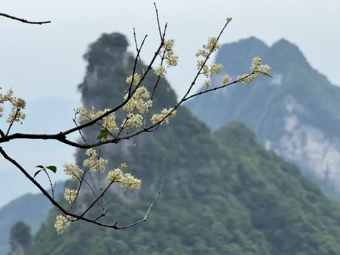 选择了B线,很顺畅的游览了一圈,因为下午下雨,就没有继续去西线玻璃栈道,坐了山顶小缆车下到索道站,这个小缆车是开放缆车,在树顶穿行,能看见花树盛开,植物繁茂,远处的山石树木超美,速度不快,强烈建议坐。