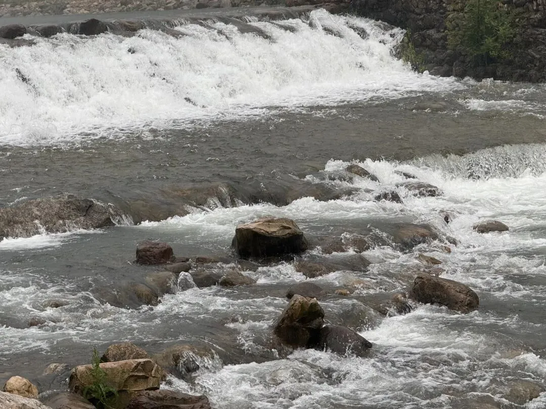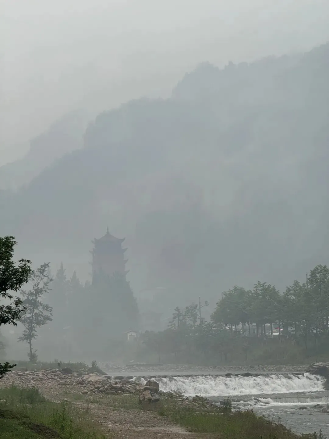 顺路可以走到东线玻璃桥,然后到达天门山寺,能看见山顶的云梦仙顶,直接坐露天缆车到达,游览后再坐一个电梯就能到索道站,坐最长索道直接下山。如果需要再游览西线,就需要在天门山寺岔路口,选择向西线玻璃桥方向走。露天缆车我喜欢的,像侠客在飞行,看见远山疏阔,树林生花,听见涧中蛙鸣,蝉鸟声声,还好没下雨,想必也很狼狈。后来下雨了,急急下山,应该继续走西线的,偶尔遗憾才是旅行的一部分。次日要去张家界国家森林公园,住东门附近,下山饭后就移动到武陵源区。民宿旁的金鞭溪笼在水汽中,雨后流水翻滚,雾气缭绕,溪石琳琅,一年蓬肆意开放,远处是东门标志塔。感觉在河边可以玩一整天。