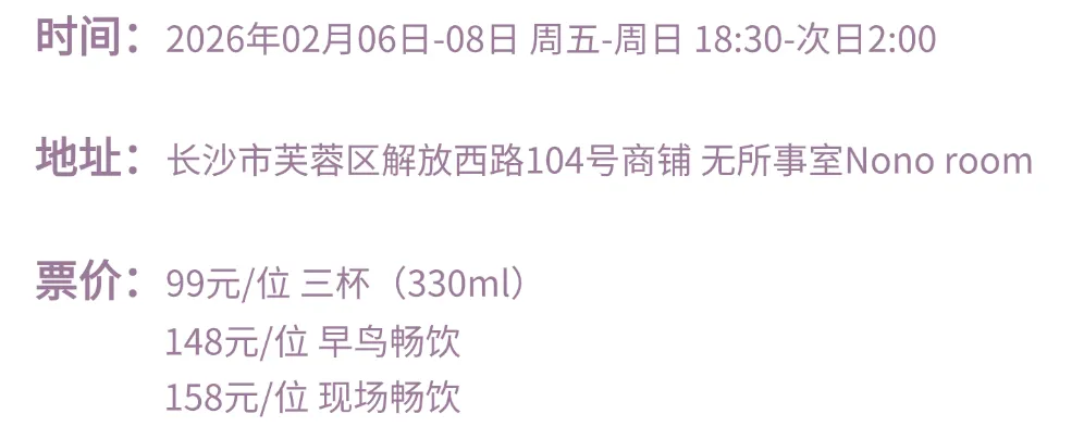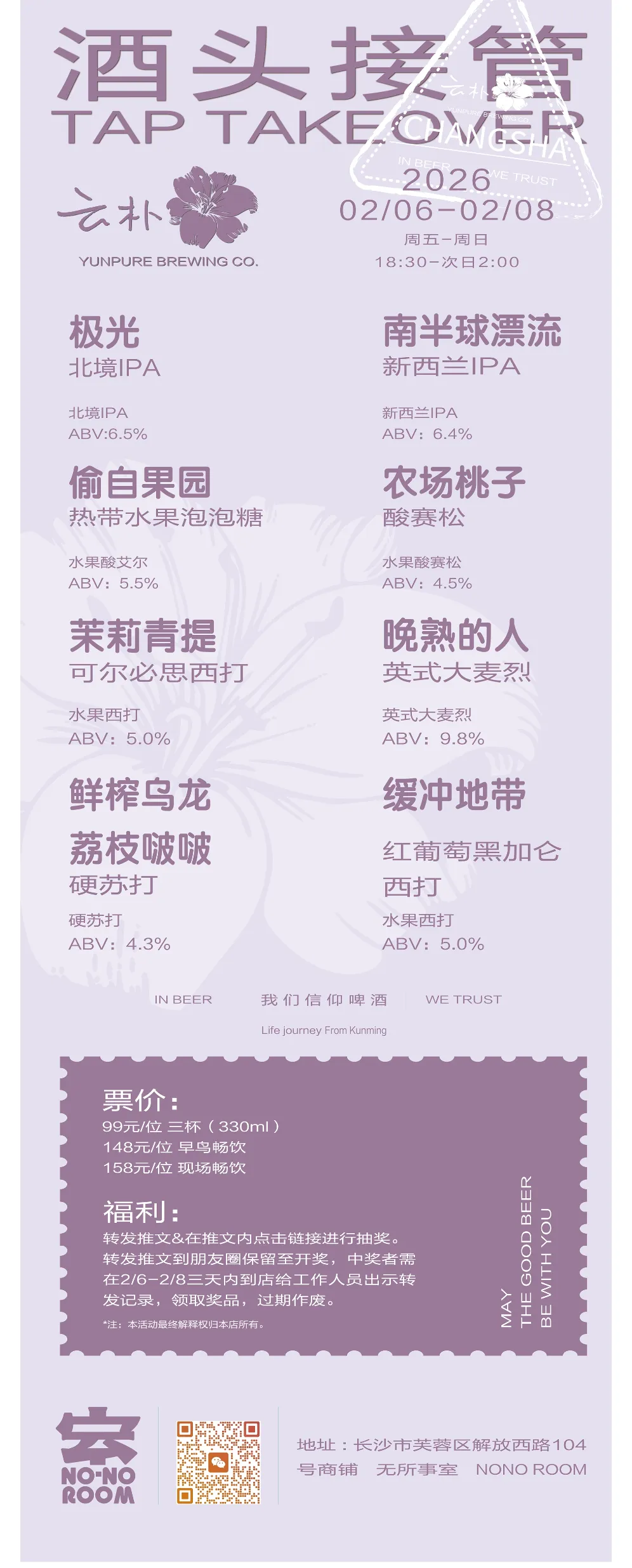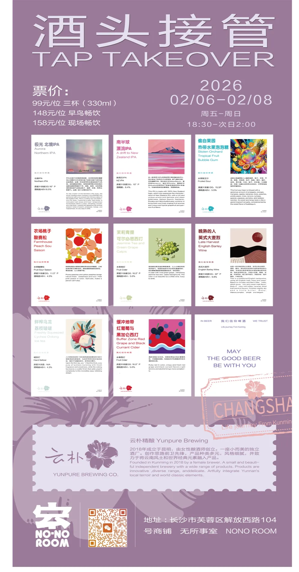>云朴接管【长沙 | 无所事室Nono room】2.6-2.8 周五-周日 云朴精酿城市巡游Vol.168