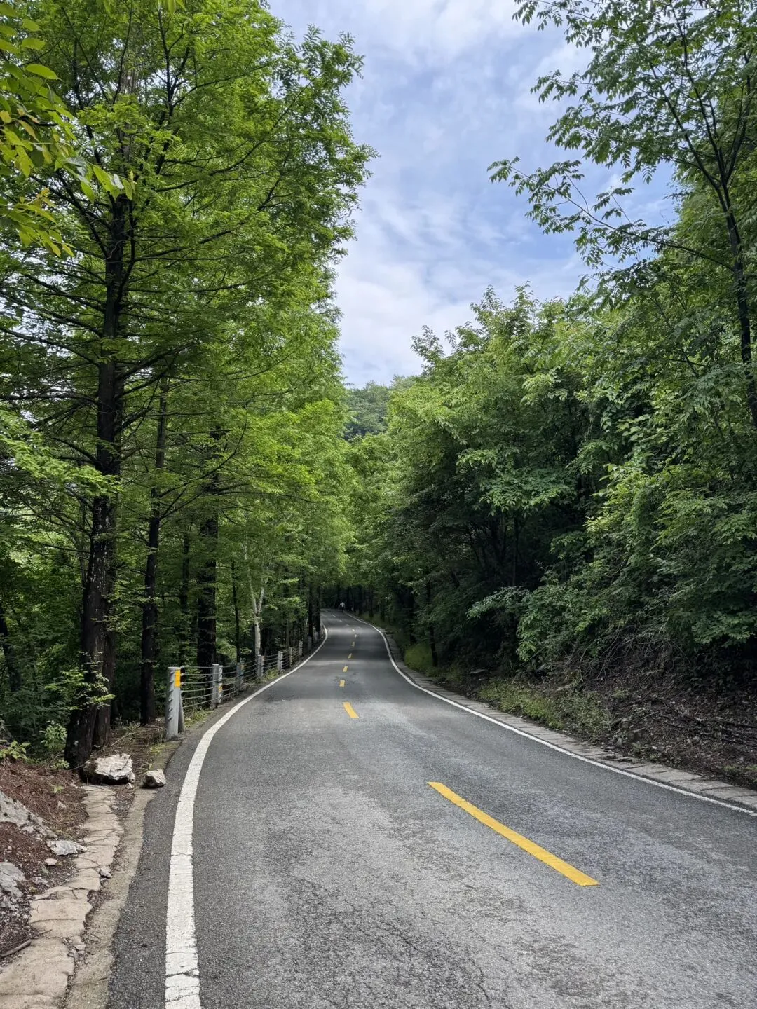行走在大巴的道路上,浓荫绿意氛围满满,树下走路也不热。