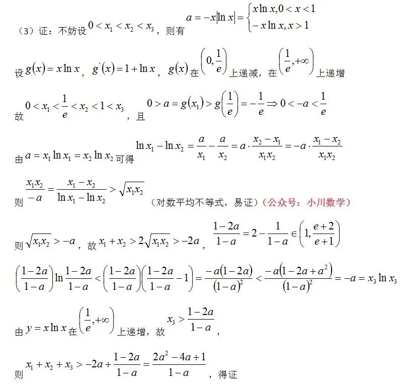 >长沙市2026年高三年级模拟考试第19题,极值点偏移+对数平均不等式