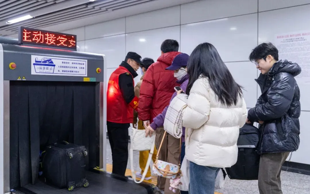 平安,是团圆的前提。地铁内空间密闭、客流密集,严格的安检是守护所有乘客出行安全的坚实防线。在此温馨提醒各位返湘家人,除管制刀具、烟花爆竹等明令禁止的危险品外,鸡、鸭等活禽活物,散装白酒、充气气球等物品,均不可携带进站。携带大件行李的乘客请提前留意行李规范:物品重量不得超过30公斤,外部尺寸长、宽、高之和不得超过1.8米。提前整备行李,让安检通关更高效,让返乡脚步更轻快。