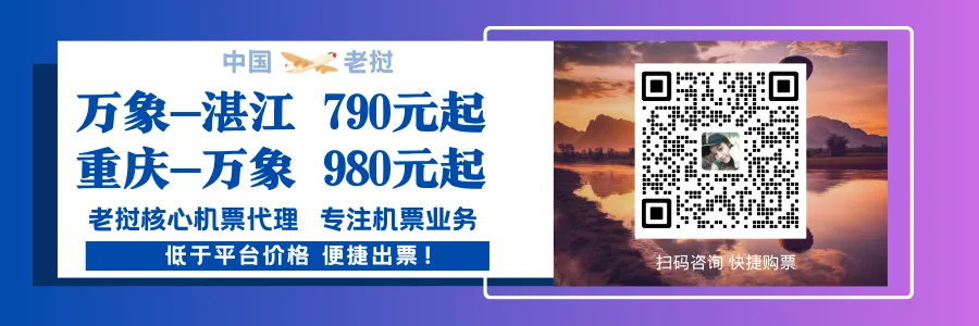 2月中老特价机票:7日万象-长沙1650元/人;7日湛江-万象1250元/人