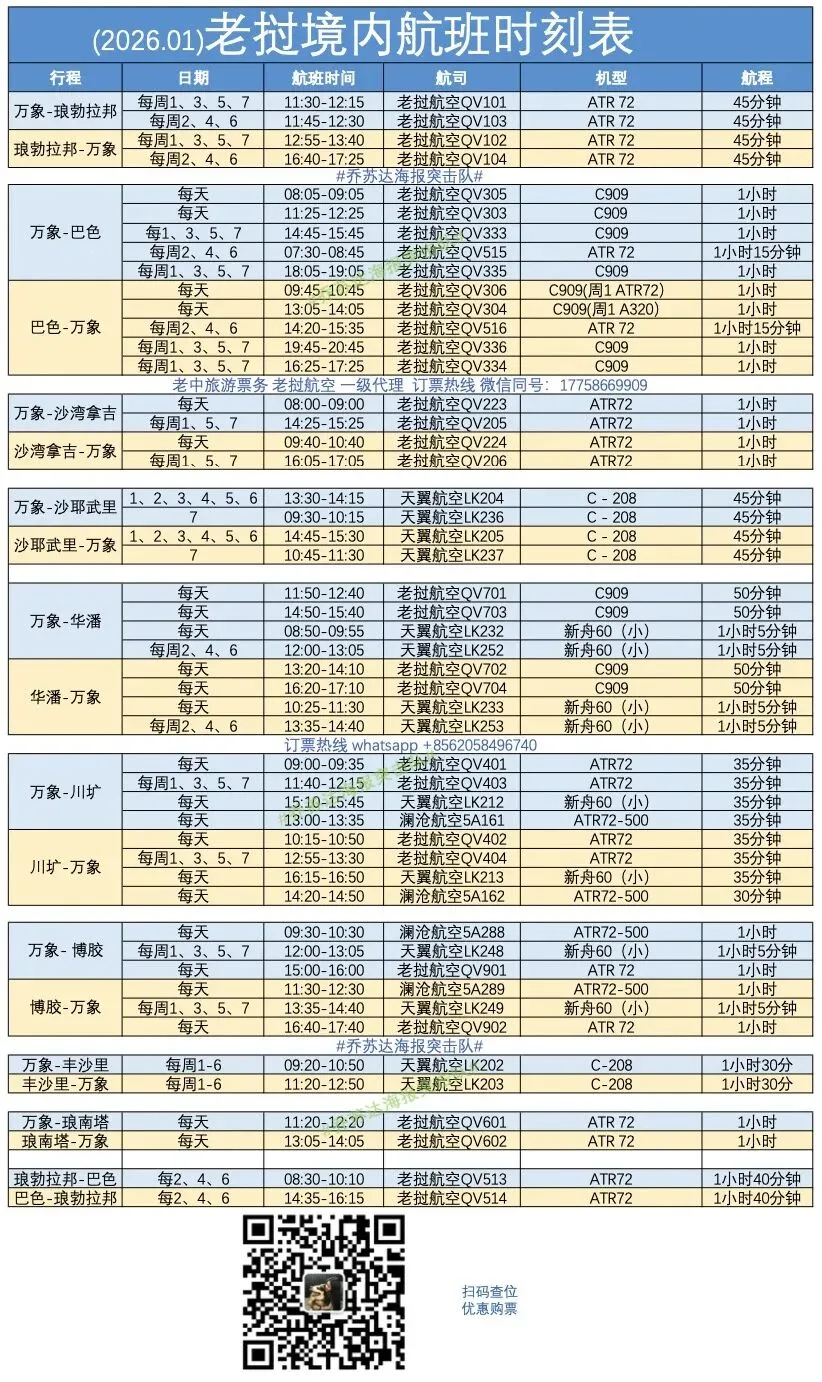 老挝境内航线汇总:
