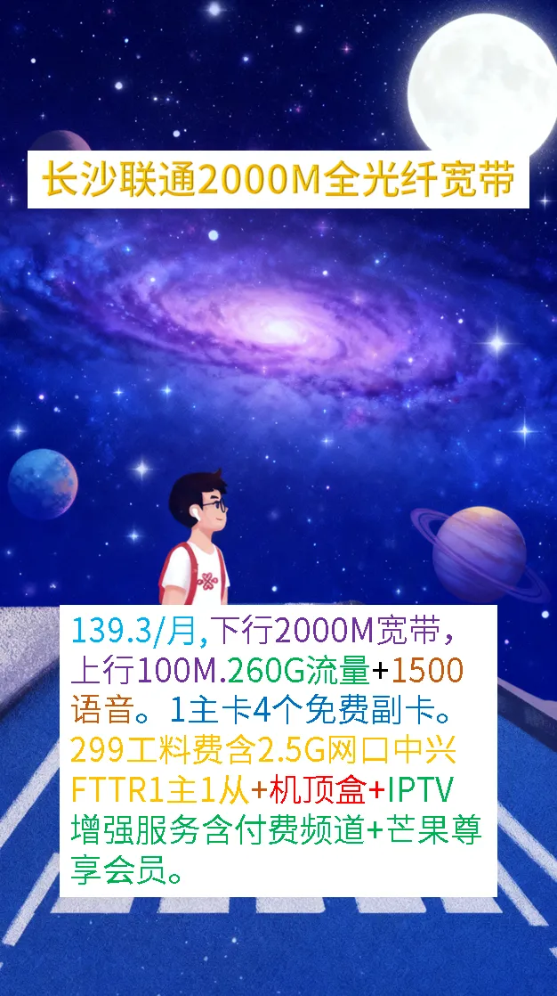现今,很多客户的手机流量越来越不够用了。甚至有的客户在路上或者在外面都是关流量度日,这样太不方便了。当初客户办的套餐可能还是“小甜甜”套餐,过了几年,套餐就成了“牛夫人”。手机像素越来越高,接收的微信,或者朋友圈,还有抖音等视频的图片,视频清晰度越来越高。单张照片的大小越来越大,例如前后5000万像素的手机随便拍一张照片就是10M以上。很多地方传这些照片都得先截图压缩。 现今微信视频通话也清晰度上来了,画质不压缩,会消耗更多的流量。下的app多了,后台联动唤醒。后台流量消耗增加。所以原来的老套餐129一个月,30G+300M宽带自然就是不够用的。 改5/8元/月保号,可考虑办理我们的139元/月1主卡4个免费副卡的套餐。220G国内流量+1500分钟通话+2000M宽带,299工料费含中兴FTTR1主1从+机顶盒。附带电视的芒果影视会员+付费频道开锁长期有效。 没装宽带的老号码,提档40元/月,额外40G流量+2.5G网口中兴FTTR+宽带升千兆。2.5G网口,不浪费每一分钱的性能。1000M宽带实测网速:15秒下载好王者荣耀(设备使用中兴FTTR)2000M宽带实测网速:8秒下好王者荣耀(设备使用中兴FTTR)THE COLD CURRENT WILL ARRIVE资质授权为按规定展示用,实际运营人为长沙联通政企客户经理。