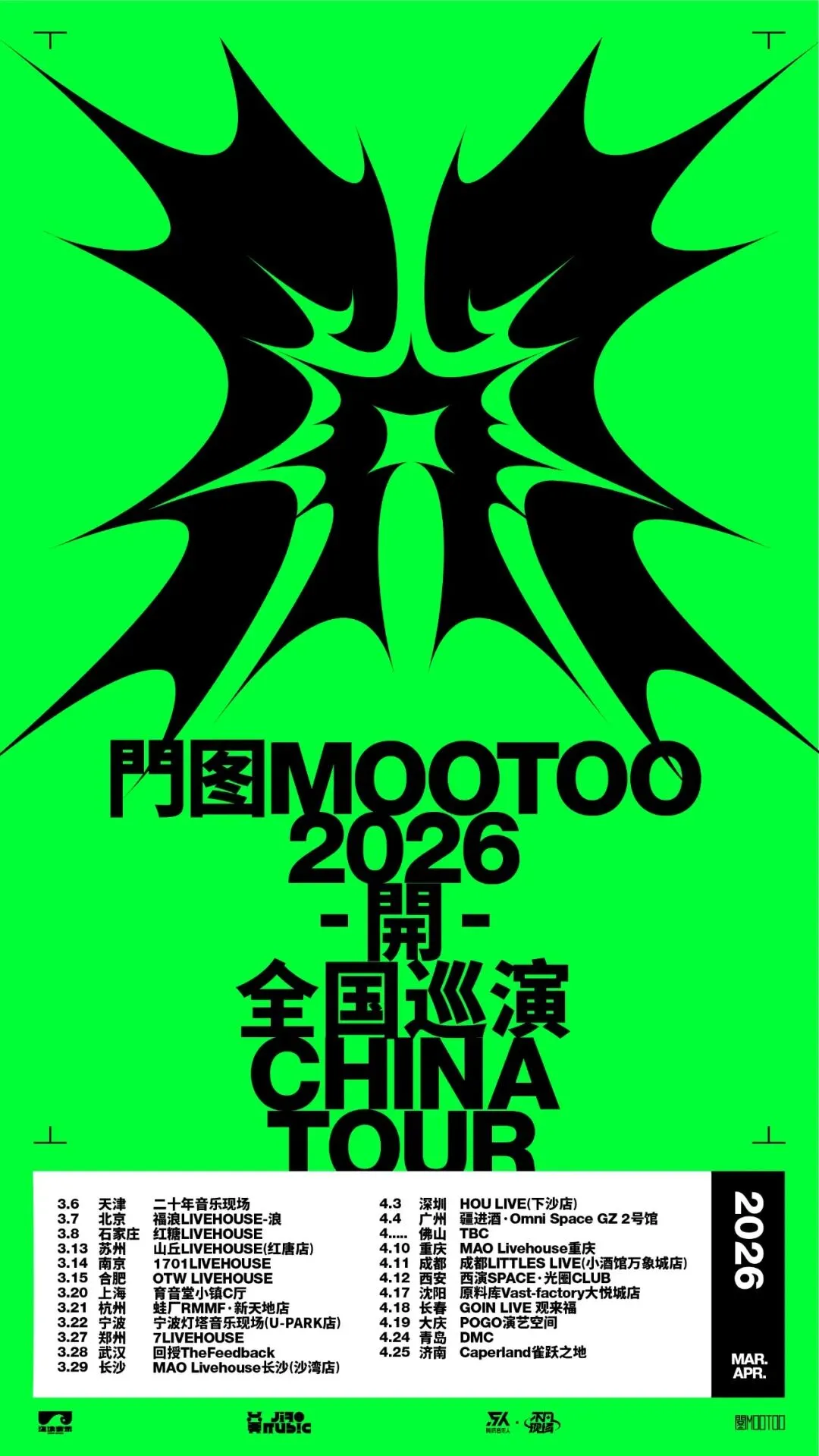 3月29日(周日) 长沙 MAO Livehouse长沙(沙湾店)