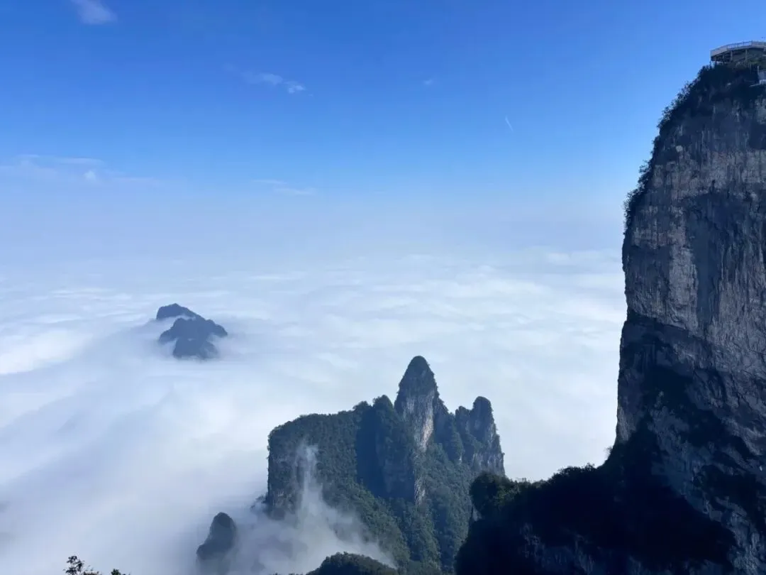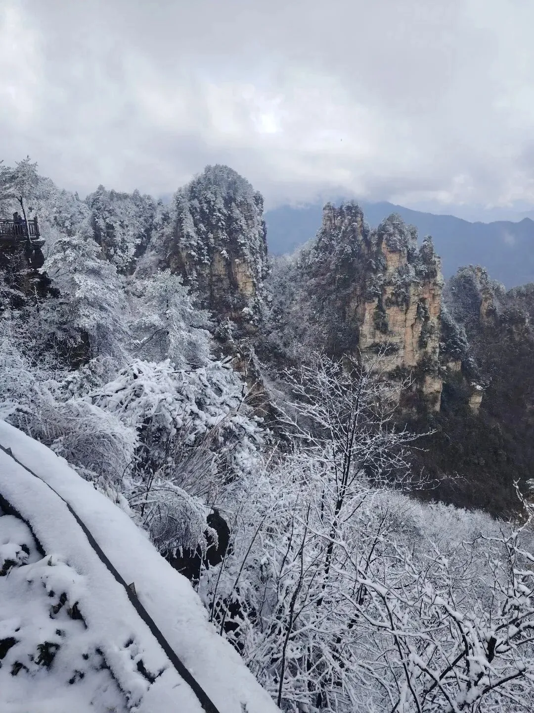 雪后的天子山宛如童话世界。乘坐缆车缓缓上升,脚下是银装素裹的峰林,远处是云海翻腾,每一个角度都是一张明信片。
