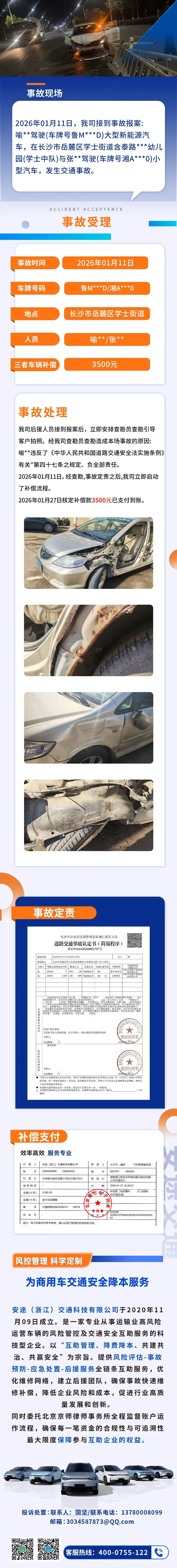 >补偿案例|长沙市交通事故,安途交通补偿3500元到账