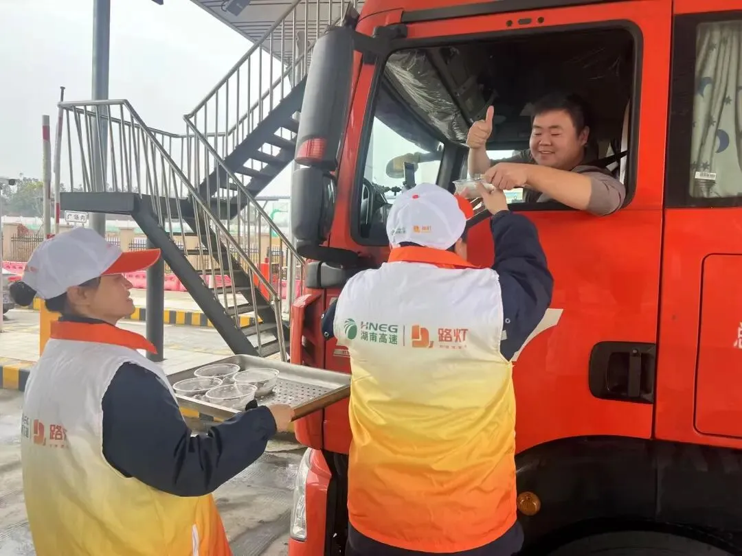 白竹收费站作为长沙生鲜农产品绿通主动脉,将暖心服务融入绿通保畅全流程。以高效落实绿通政策,以专业查验、快速放行守护“菜篮子”“果盘子”运输畅通;在收费广场设立便民服务点,备好热饮、应急物资与绿通政策指引,为过往司乘送上冬日暖意,提供出行帮助。用高效服务与暖心举措,让绿通大道成为寒冬里的暖心通道,为每一段旅途保驾护航。