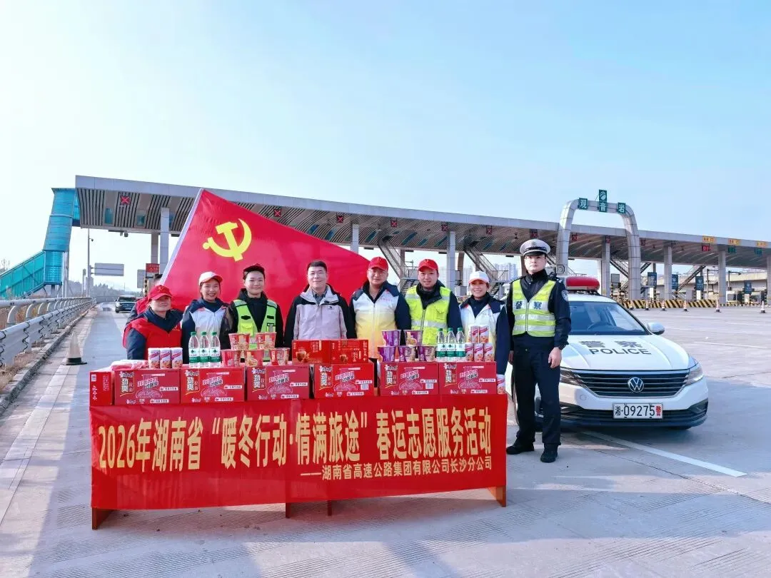 2月2日,星沙收费站联合高速交警水渡河大队、广福路产养护管理所等多家单位举行春运启动仪式,同步开展“暖冬行动·情满旅途”春运志愿服务活动。各联动单位明确春运服务目标与职责分工,将志愿服务与保通保畅、应急处置、便民服务深度融合。仪式后,志愿者在收费广场搭建服务台,为司乘提供姜茶、开水补给、路线咨询、ETC安装等便民服务,同步宣传冬季行车安全知识,暖心举措获广泛认可。春运期间,星沙收费站将持续开展常态化志愿服务,以坚守保畅通、用温情暖归途,全力守护司乘平安返乡。