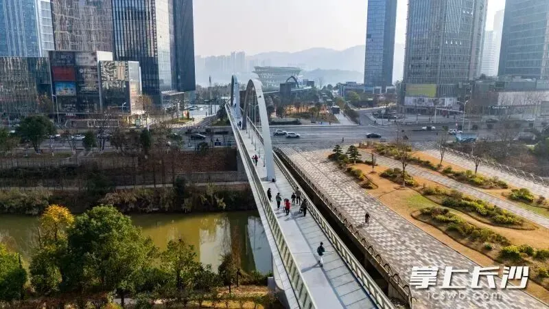漫步于通透的空中廊道,既能感受便捷出行的红利,又能沉浸式领略梅溪湖“中轴时代”的全新城市魅力,成为长沙市民新晋休闲打卡选择。