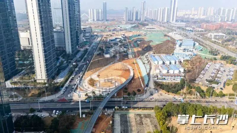 目前,中轴线东段已建成开放,而在不远处的西段一期也已进入最后的冲刺阶段,预计今年内对市民开放。未来,随着全段逐步贯通,这条中轴线将进一步串联起中央公园、核心商务区、轨道交通枢纽等重要节点,持续强化集科技、金融、商务、休闲于一体的城市新中心功能,引领长沙城市风尚与发展新格局。
