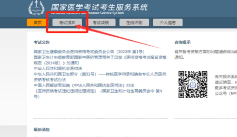 1.登录国家医学考试考生服务系统。