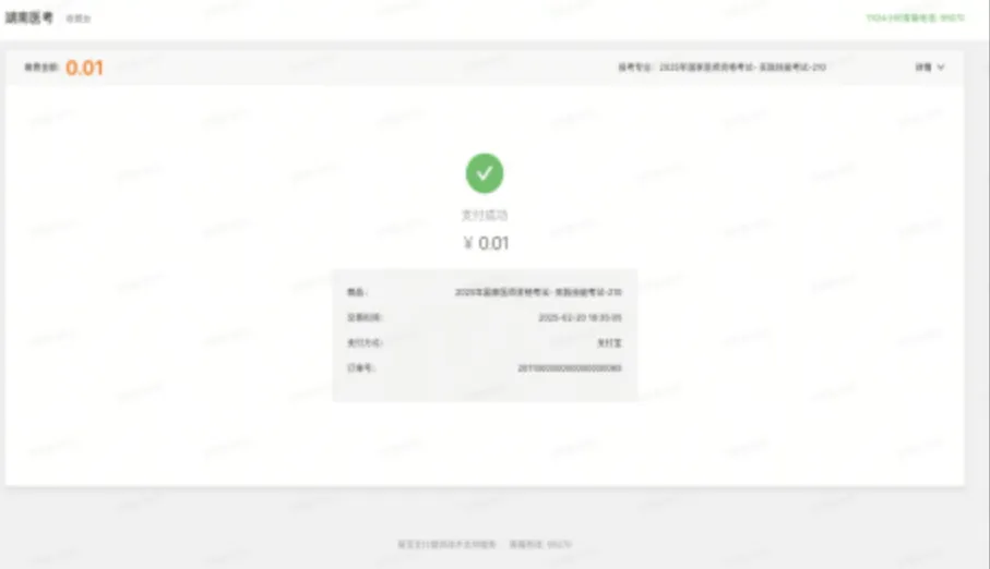 6.支付成功,缴费页面会显示“支付成功”,则表示已完成考试缴费。后续其它事宜请及时关注湖南省卫生健康委医学考试中心和长沙卫健微信公众号、湖南医考网(www.cndoctor.cn)。