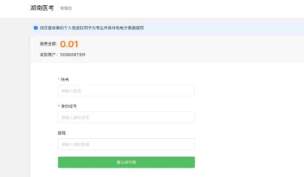 根据国家医师资格考试工作安排,2025年医学综合考试缴费起止时间为2025年6月26日12时至7月6日24时。截至到7月4日上午12时,长沙考点仍有200余名实践技能考试成绩合格和技能免考的考生未缴费,请未缴费的考生及时缴纳考试费用,逾期未缴费者,视为放弃考试资格。缴费流程如下: