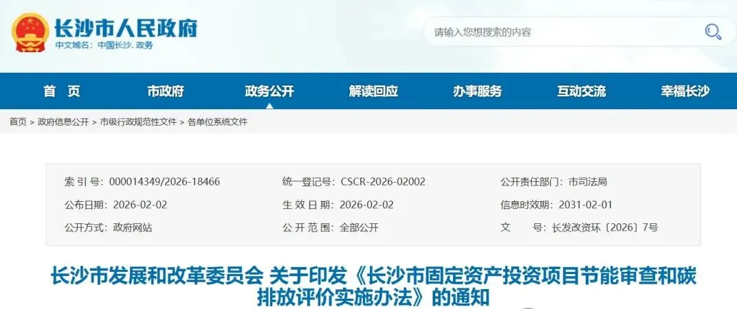 第三十四条本实施办法自2026年2月2日起施行,有效期5年。原《长沙市发展和改革委员会关于印发〈长沙市固定资产投资项目节能审查实施办法〉的通知》(长发改资环〔2023〕120号)同时废止。