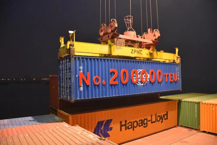 2021年,长沙港集装箱年吞吐量破20万标箱