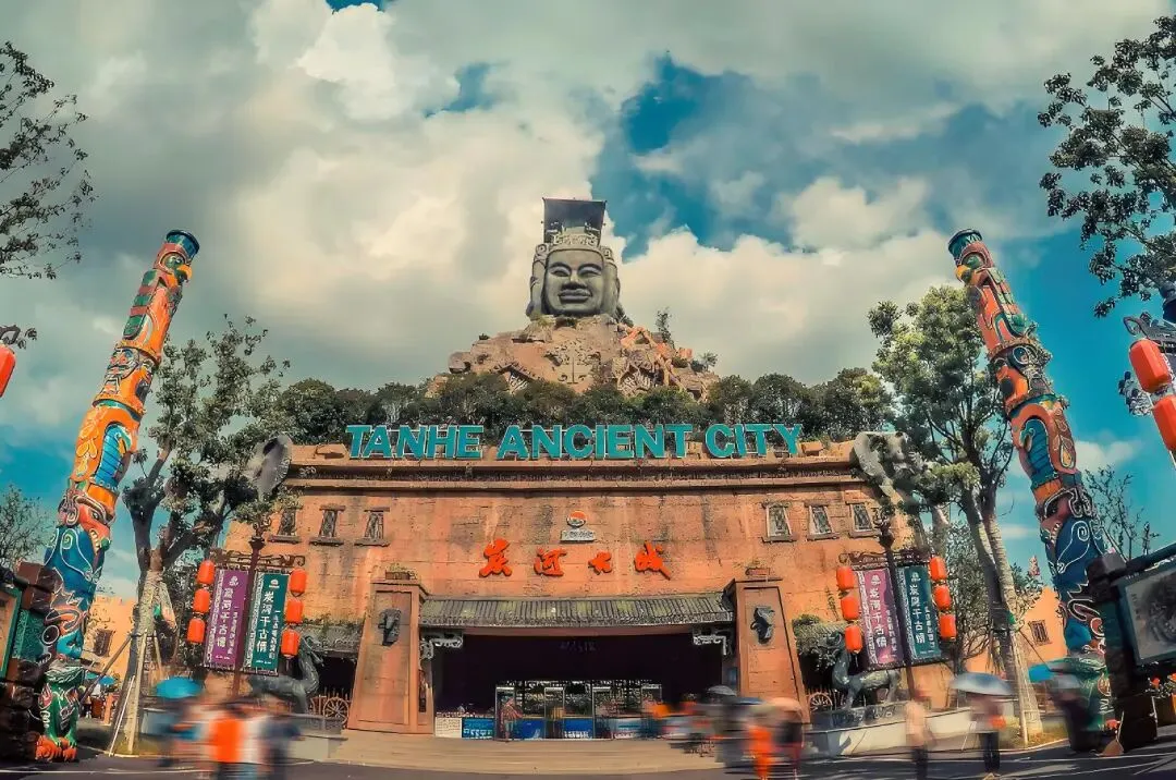 旁边有个仿古城,孩子爱跑,爹妈爱拍,肚子饿了就吃碗米粉压压。