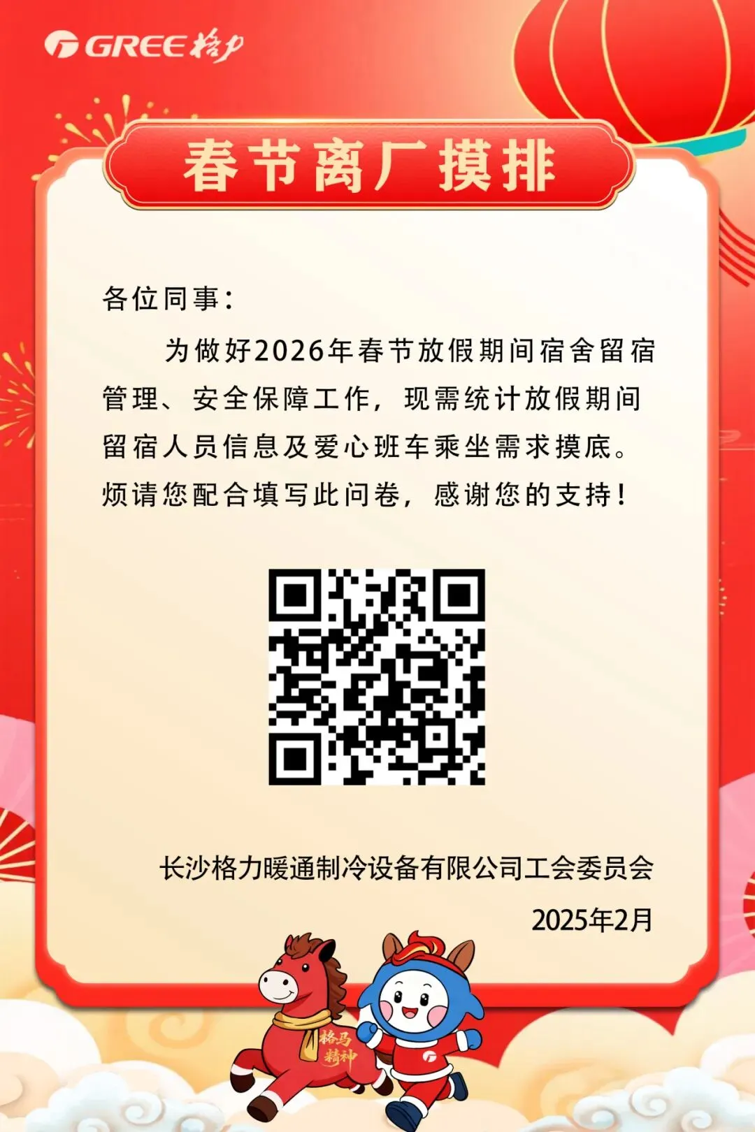 >长沙格力2026年春节离厂摸排工作通知